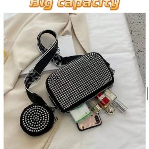 Includes a main sling bag fully covered in imported rhinestones on both sides, plus a cute matching coin pouch – ideal for your cards, cash, or keys. - 💼 Spacious Size – 9 x 8 inches