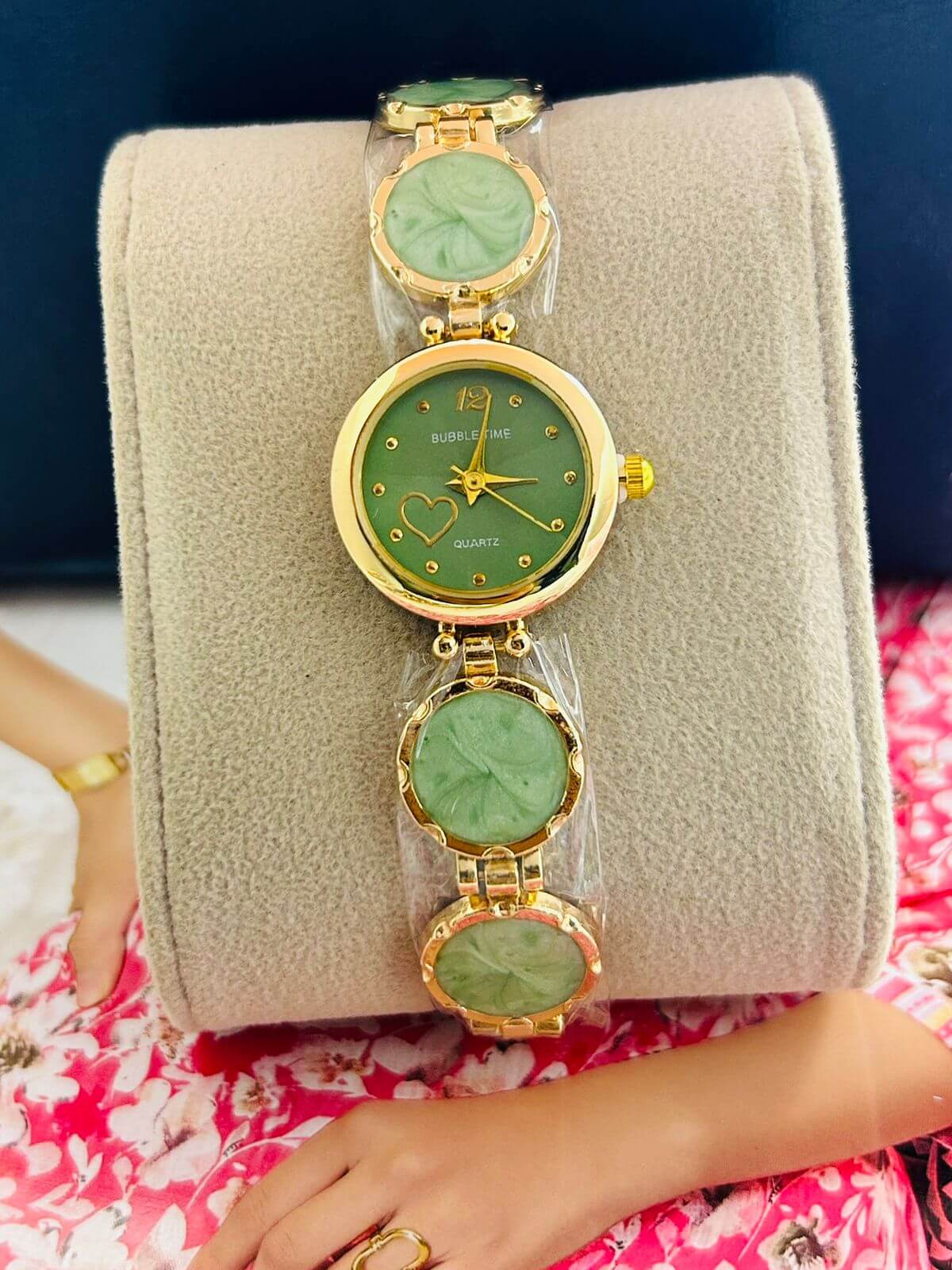 ✔ Stylish Round Dial with Crystal Detailing