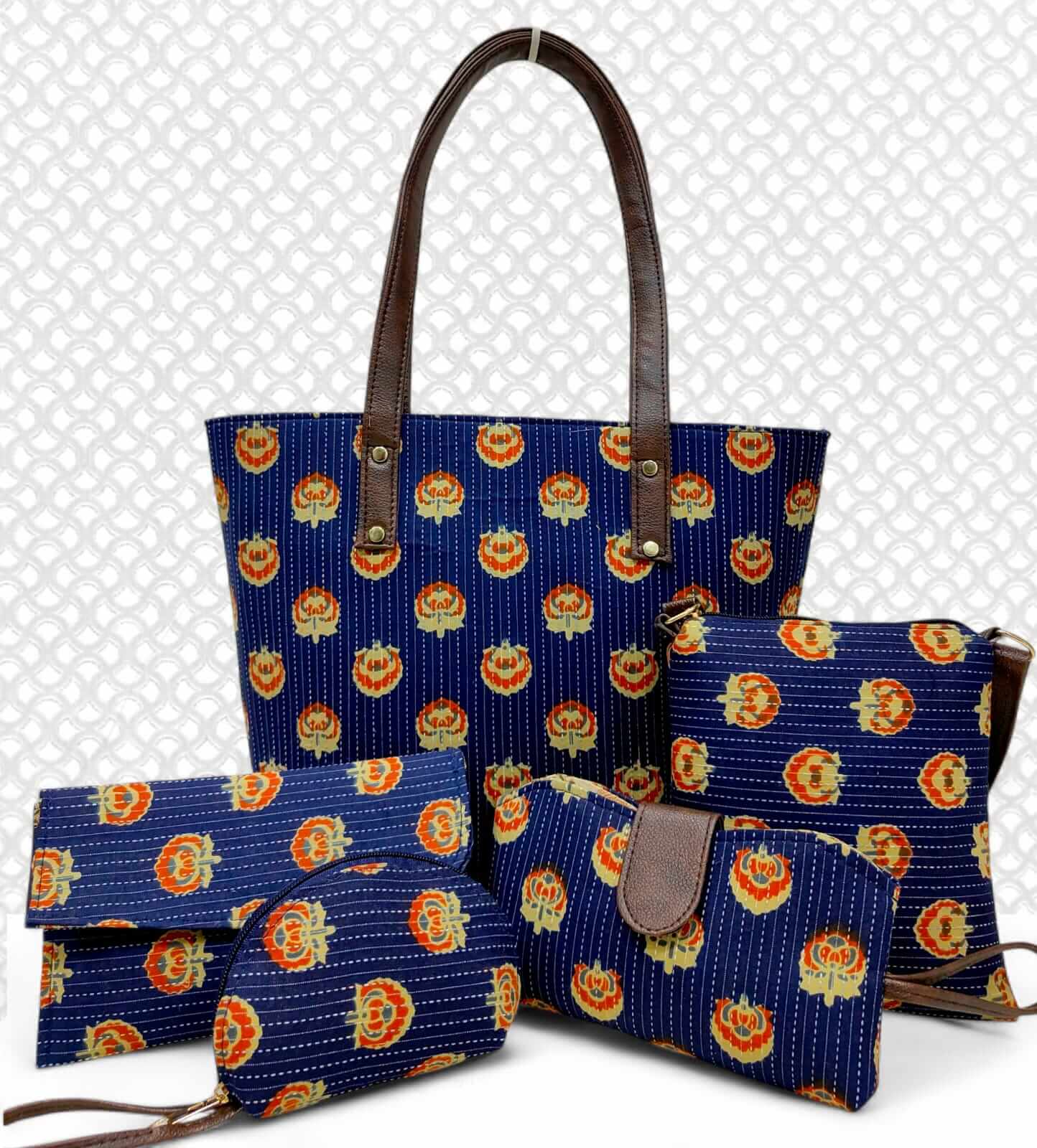 Ikkat Handbag and Sling Bag 5 Combo Set with Goggle Case Coin Pouch Envelope Womens Ethnic Bags