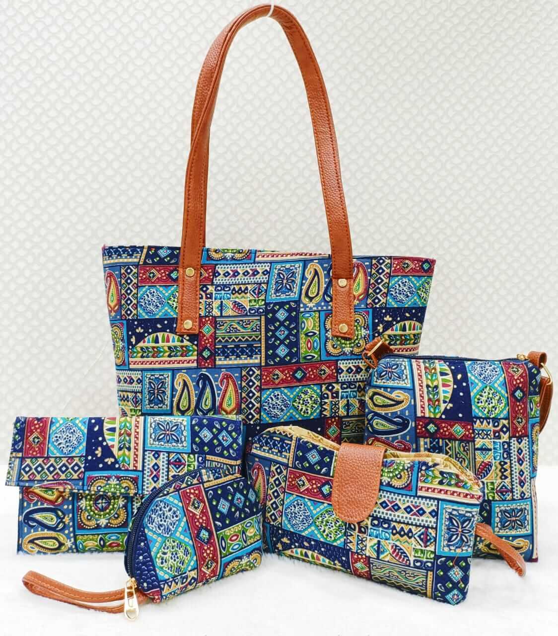 Ikkat Handbag and Sling Bag 5 Combo Set with Goggle Case Coin Pouch Envelope Womens Ethnic Bags