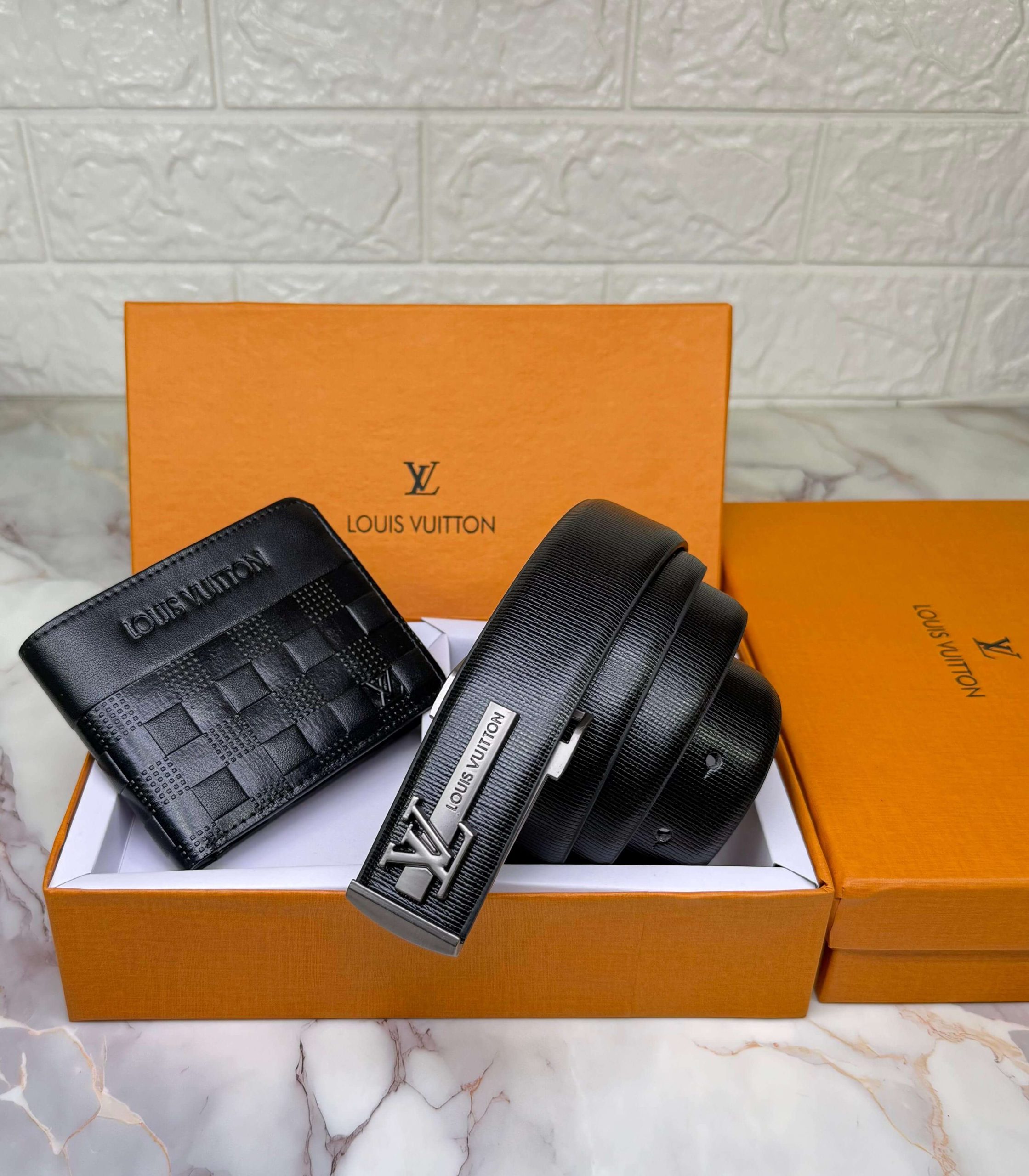 Experience timeless luxury with this Louis Vuitton Wallet + Belt Combo, crafted with premium imported materials for durability, comfort, and unmatched style.