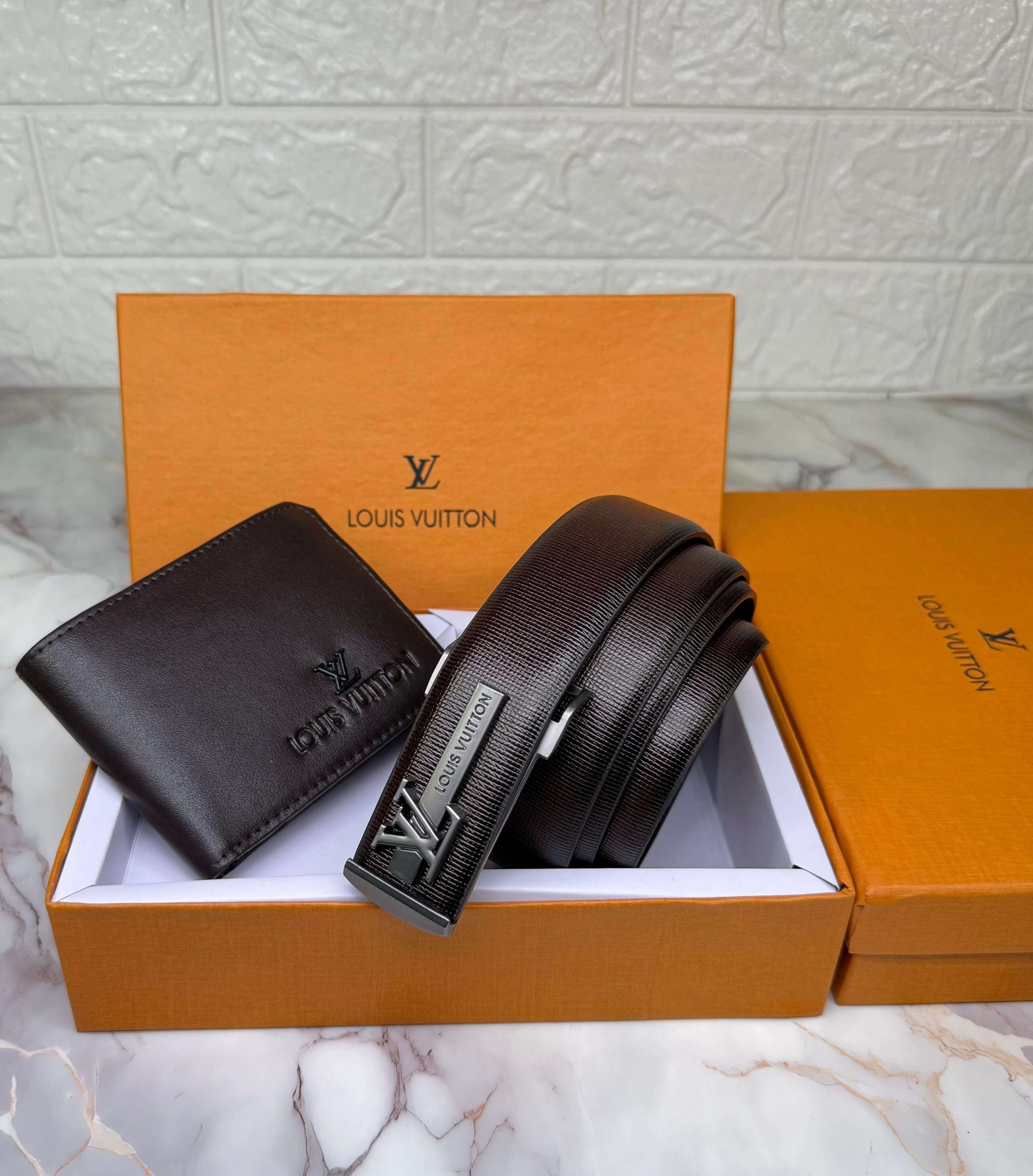 Experience timeless luxury with this Louis Vuitton Wallet + Belt Combo, crafted with premium imported materials for durability, comfort, and unmatched style.