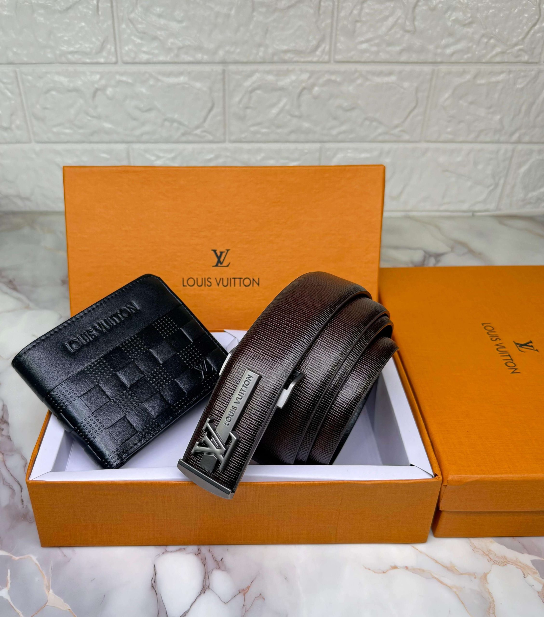 Experience timeless luxury with this Louis Vuitton Wallet + Belt Combo, crafted with premium imported materials for durability, comfort, and unmatched style.