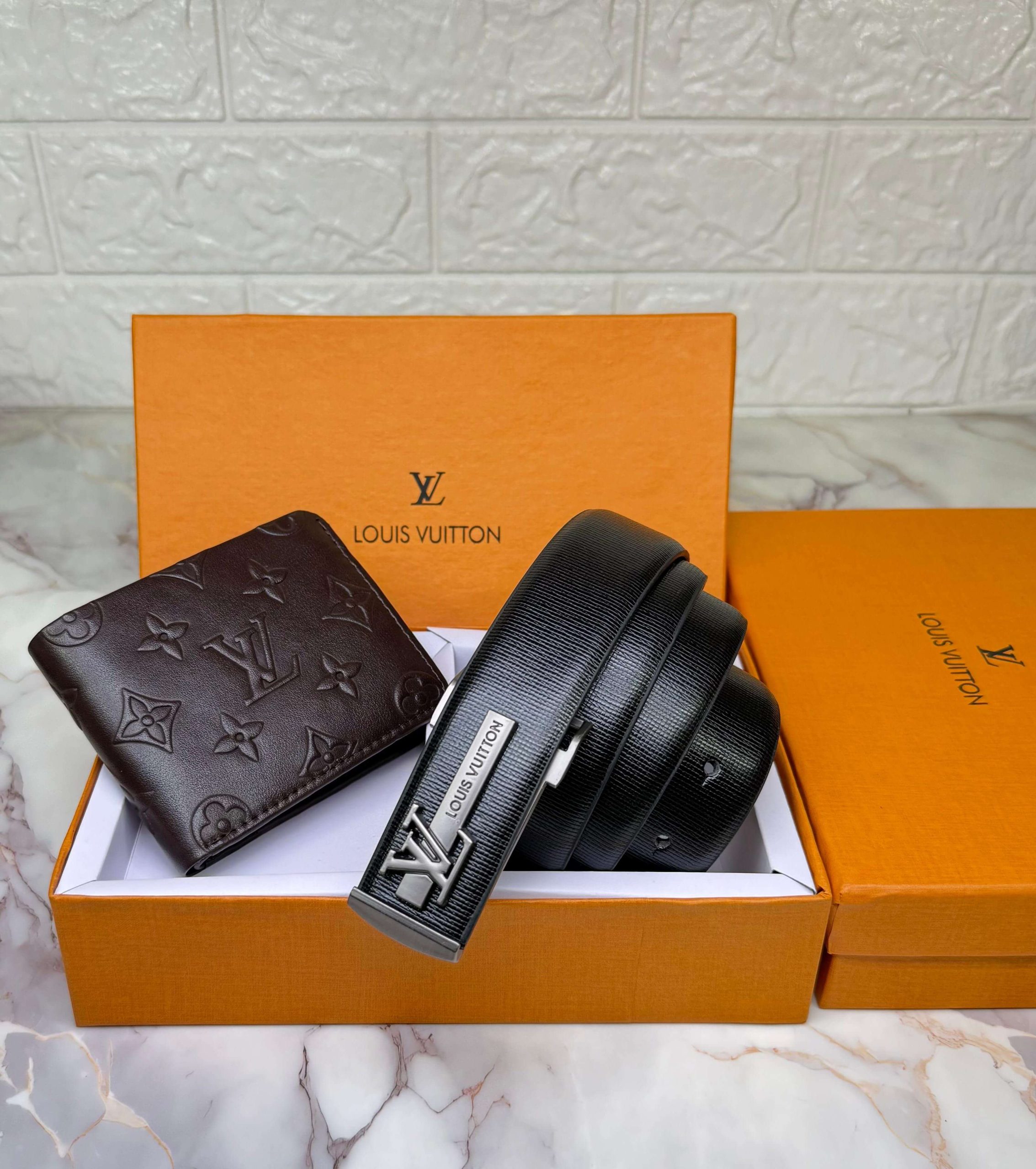 Experience timeless luxury with this Louis Vuitton Wallet + Belt Combo, crafted with premium imported materials for durability, comfort, and unmatched style.