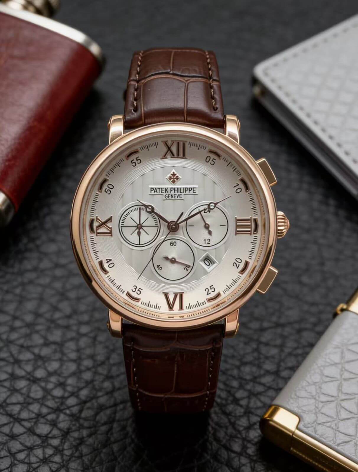 • Premium Brown Crocodile Pattern Leather Strap – Offers a classic gentleman style with superior comfort