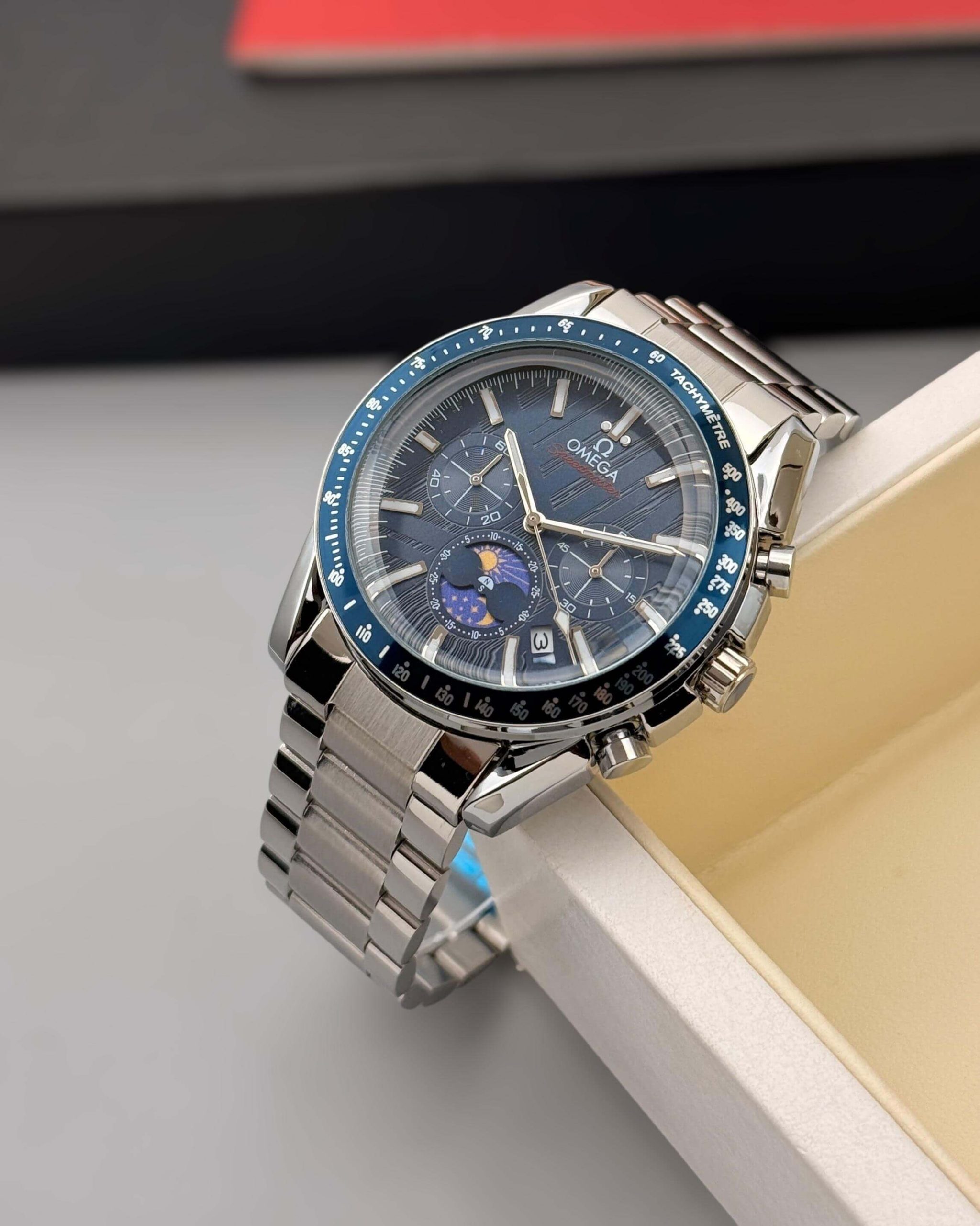 A stunning luxury chronograph watch crafted for men who appreciate precision, performance, and timeless style. This premium timepiece features a beautifully textured blue dial paired with a tachymeter bezel, delivering a bold motorsport-inspired look. The multi-functional sub-dials enhance its sporty appeal while ensuring everyday practicality.