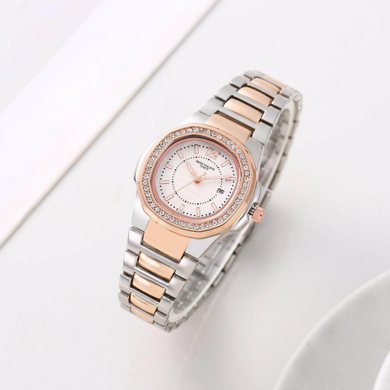 Elevate your everyday style with this elegant rose gold stainless steel watch. Designed with a radiant crystal-embellished bezel, this timepiece effortlessly blends sophistication and modern charm. The soft blush dial features refined hour markers, slim hands, and a convenient date display for both beauty and functionality.