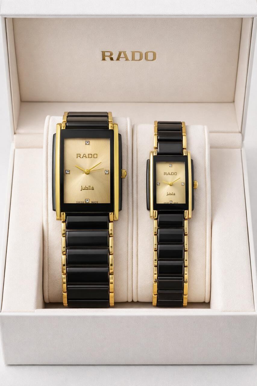Upgrade your style with this elegant couple watch set from Rado, designed to reflect sophistication and timeless charm.