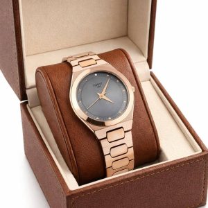🔹 Strap: Dual-tone metal bracelet (Silver & Rose Gold)